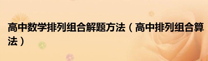 关于高中数学排列组合解题方法,高中排列组合算法这个很多人还不知道,今天菲菲来为大家解答以上的问题,现在让我们一起来看看吧!
