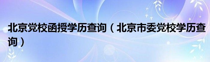 关于北京党校函授学历查询,北京市委党校学历查询这个很多人还不知道,今天菲菲来为大家解答以上的问题,现在让我们一起来看看吧!
