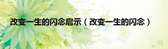 关于改变一生的闪念启示,改变一生的闪念这个很多人还不知道,今天菲菲来为大家解答以上的问题,现在让我们一起来看看吧!