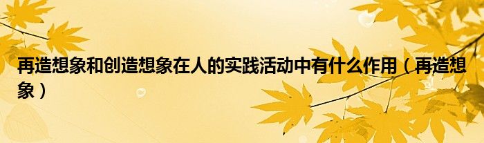 关于再造想象和创造想象在人的实践活动中有什么作用,再造想象这个很多人还不知道,今天菲菲来为大家解答以上的问题,现在让我们一起来看看吧!