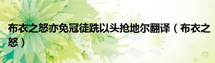关于布衣之怒亦免冠徒跣以头抢地尔翻译,布衣之怒这个很多人还不知道,今天菲菲来为大家解答以上的问题,现在让我们一起来看看吧!