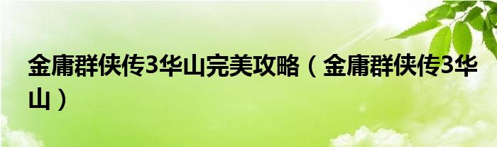 关于金庸群侠传3华山完美攻略,金庸群侠传3华山这个很多人还不知道,今天菲菲来为大家解答以上的问题,现在让我们一起来看看吧!
