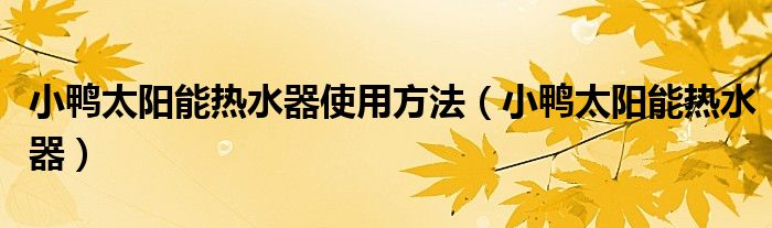 小鸭太阳能热水器使用方法(小鸭太阳能热水器)