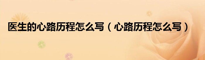 关于医生的心路历程怎么写,心路历程怎么写这个很多人还不知道,今天菲菲来为大家解答以上的问题,现在让我们一起来看看吧!