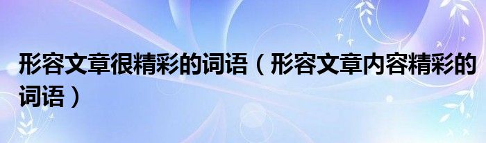 关于形容文章很精彩的词语,形容文章内容精彩的词语这个很多人还不知道,今天菲菲来为大家解答以上的问题,现在让我们一起来看看吧!