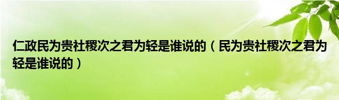 仁政民为贵社稷次之君为轻是谁说的(民为贵社稷次之君为轻是谁说的)