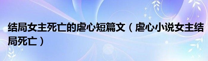 大家好,小晋来为大家解答以下问题,关于结局女主死亡的虐心短篇文,虐心小说女主结局死亡很多人还不知道,今天让我们一起来看看吧!
