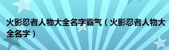 关于火影忍者人物大全名字霸气,火影忍者人物大全名字这个很多人还不知道,今天菲菲来为大家解答以上的问题,现在让我们一起来看看吧!