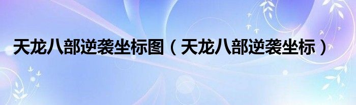 关于天龙八部逆袭坐标图,天龙八部逆袭坐标这个很多人还不知道,今天菲菲来为大家解答以上的问题,现在让我们一起来看看吧!