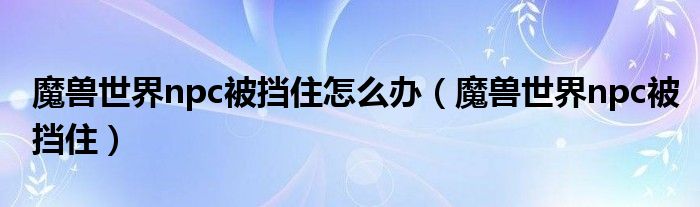 关于魔兽世界npc被挡住怎么办,魔兽世界npc被挡住这个很多人还不知道,今天菲菲来为大家解答以上的问题,现在让我们一起来看看吧!