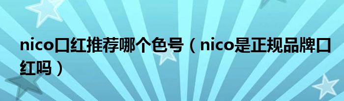 大家好,小晋来为大家解答以下问题,关于nico口红推荐哪个色号,nico是正规品牌口红吗很多人还不知道,今天让我们一起来看看吧!